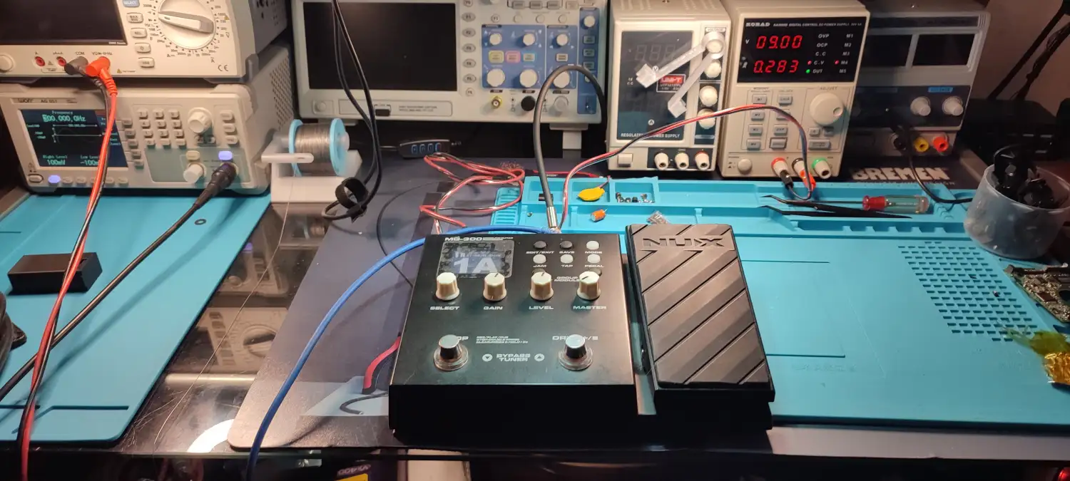 Reparamos todas las marcas: Boss, Line 6, Digitech, Electro-Harmonix, MXR, Kemper, HeadRush, Neural DSP, Fractal Audio, Vox, Behringer, Dunlop, Nux y más. Trabajamos a nivel componente con equipamiento profesional y todos nuestros trabajos incluyen garantía escrita.